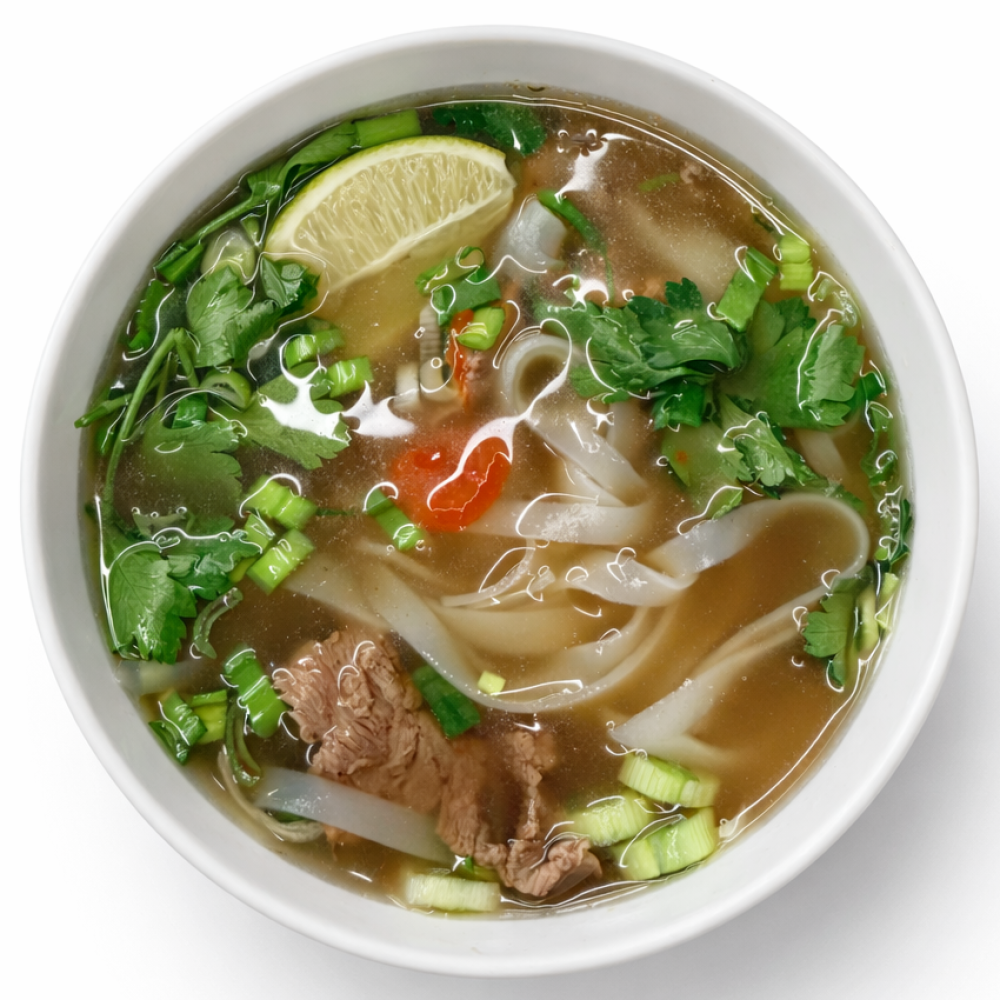 Оригинальный вьетнамский суп, говяжий бульон, говядина, рисовая лапша , лук зеленый, лайм