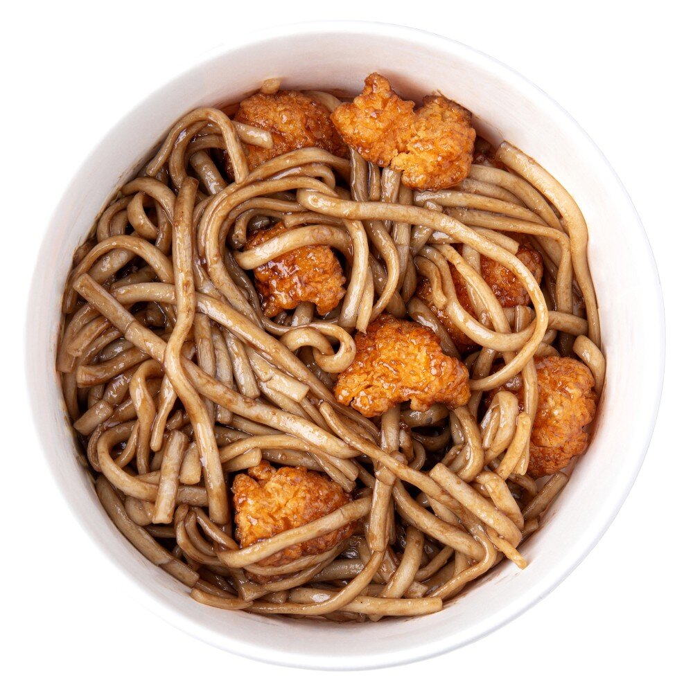 Лапша удон, соус терияки ,куриные кусочки в панировке