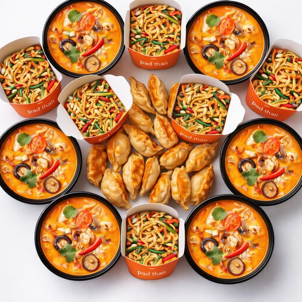 Специальный сет на 23 февраля на компанию из 6 человек со скидкой 23%, в составе: - вок с курицей в соусе терияки с лапшой удон (2 шт) - вок со свининой в кисло-сладком соусе с лапшой удон (2 шт) - вок с говядиной в соусе сладкий чили с яичной лапшой (2 шт) - тайский суп том ям с морепродуктами (6 шт) - гедза с курицей (12 шт) - лимонад (3шт), морс малиновый (3 шт) Большой горячий сет на компанию. Всё сбалансировано. Всё по-мужски.