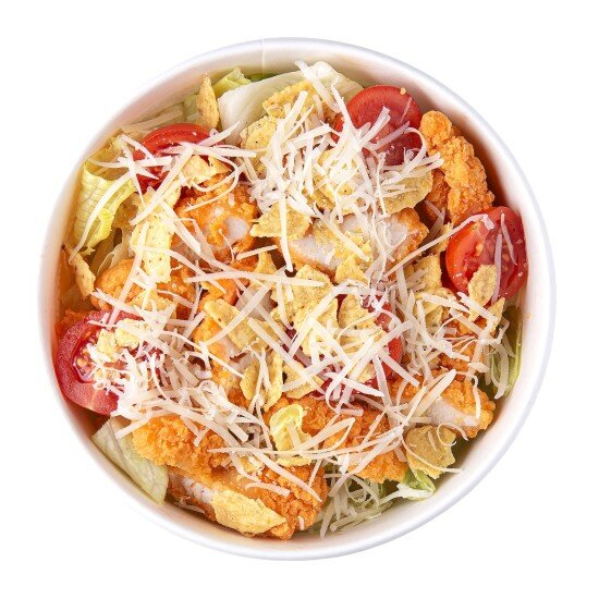 Кусочки куриного филе в хрустящей панировке, обжаренные в кисло-сладком соусе, кунжут