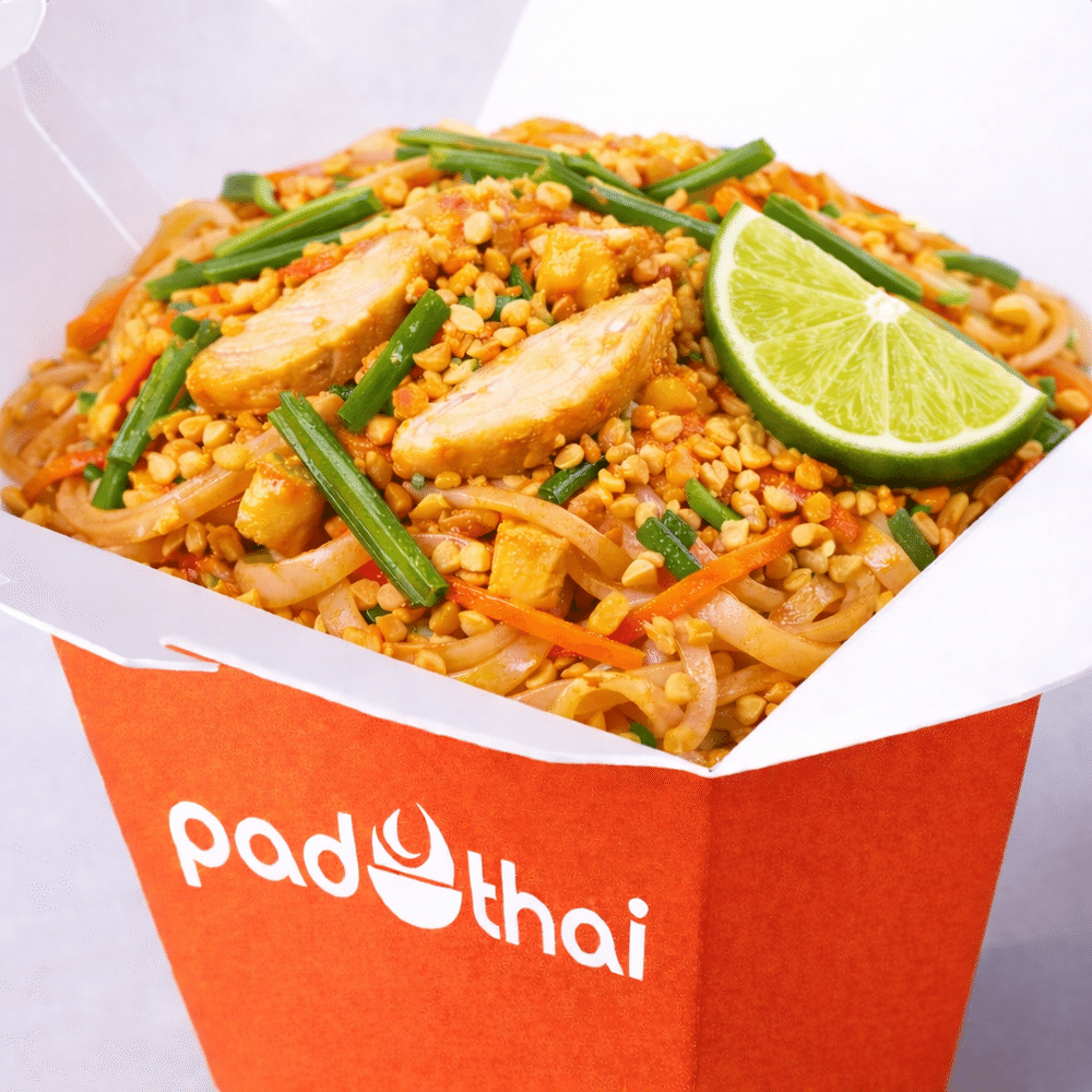 Лапша рисовая, лук зеленый , морковь, курица, тофу, арахис, лайм, яйцо обжаренное, соус Пад Тай