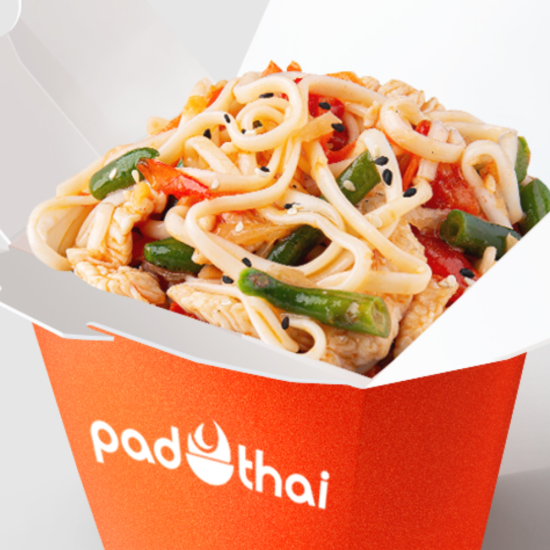 Лапша яичная, овощи ( морковь, стручковая фасоль, болгарский перец, капуста б/к ) филе утенка, шиитаке, соус перечный, обжаренное яйцо, кунжут.